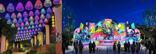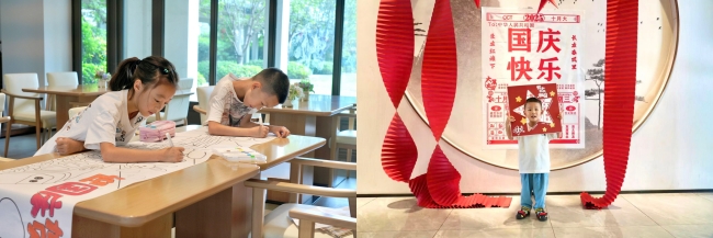 高淳产业园居住板块高淳雅园张灯结彩,充满节日氛围。一处处主题背景墙成为拍照打卡热点,棋牌室里长者业主悠闲对弈,书画室里小业主认真临摹。文旅板块固城湾景区在萌宠乐园、水上运动、灯光水秀等经典项目外,特别推出“限定杂技演艺”和专属美食体验,丰富观光内容,解锁假日新玩法,燃爆国庆美好时光。