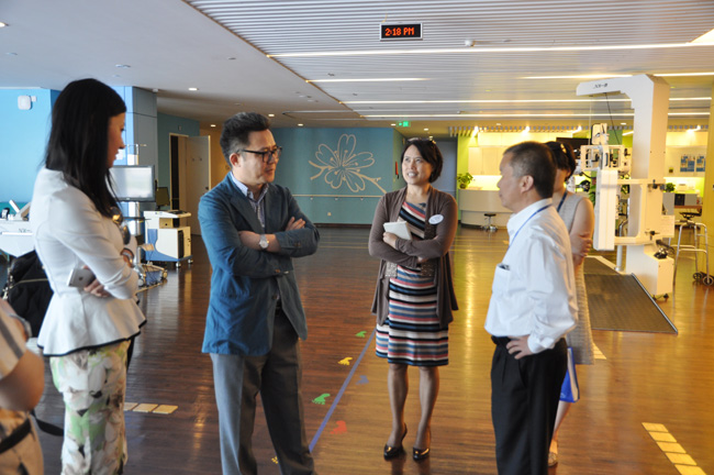 Mr. Xie Ming and Ms. Huang Wenbi gave an introduction on BJURH operation in detail, including the operation status, staff allocation and department building, etc. During the visit, Mr. Jiang Jianning successively surveyed the office area, wards and some functional areas for medicated bath, hydrotherapy, HPO (high pressure oxygen), physical therapy and occupational therapy. He gave a high appreciation on the hospital's favorable environment and patient-oriented service. Then both parties had a profound communication on the medical brand building and high-quality medical resources integration to promote the aged-care service quality.