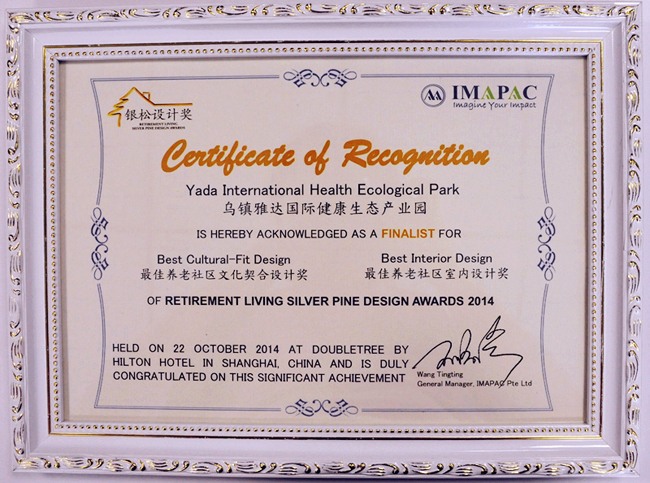At the following Retirement Living Silver Pine Design Awards Ceremony, Yada International Health Ecological Park was nominated for the"Best Cultural-Fit Design" and the"Best Interior Design". Ms. Gao Xiang attended the awarding ceremony on behalf of Yada.