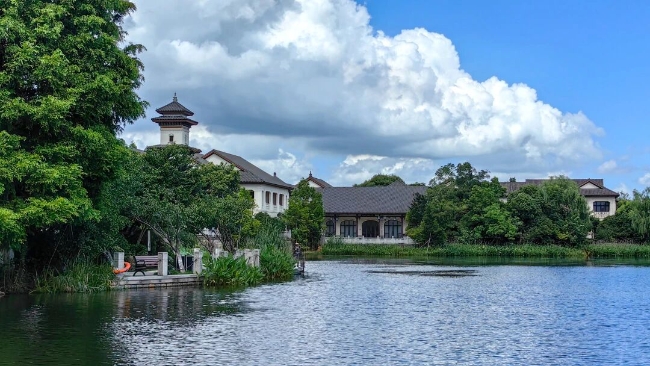 占地3.5万平方米的颐乐学院为学院的核心载体,参照岳麓书院形制布局的15幢建筑,通过风雨连廊串联起教学、运动、餐饮、商业等多元功能区,既保障出行便利,又营造出江南园林的诗画意境。